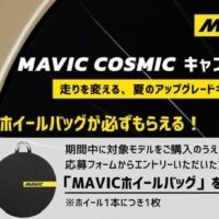 キャンペーン概要 名称:MAVIC COSMICキャンペーン 特典:対象ホイール1本ご購入につき「MAVICホイールバッグ」1枚をプレゼント 応募条件:期間中にMAVIC正規販売店で対象ホイールをご購入後、専用フォームか …